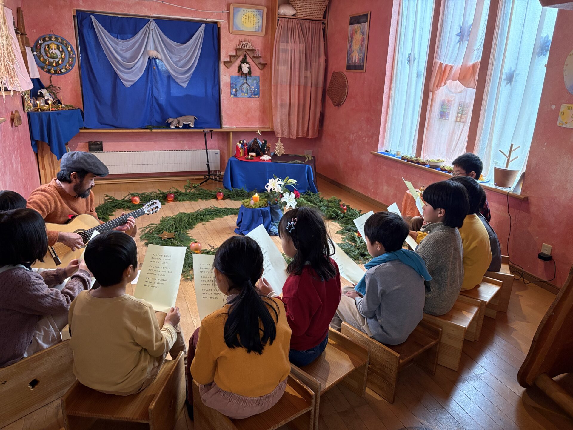 小学生ふくろう文庫低学年クラスは、セレモニーの後にみんなで「きよしこの夜」などを歌いました。