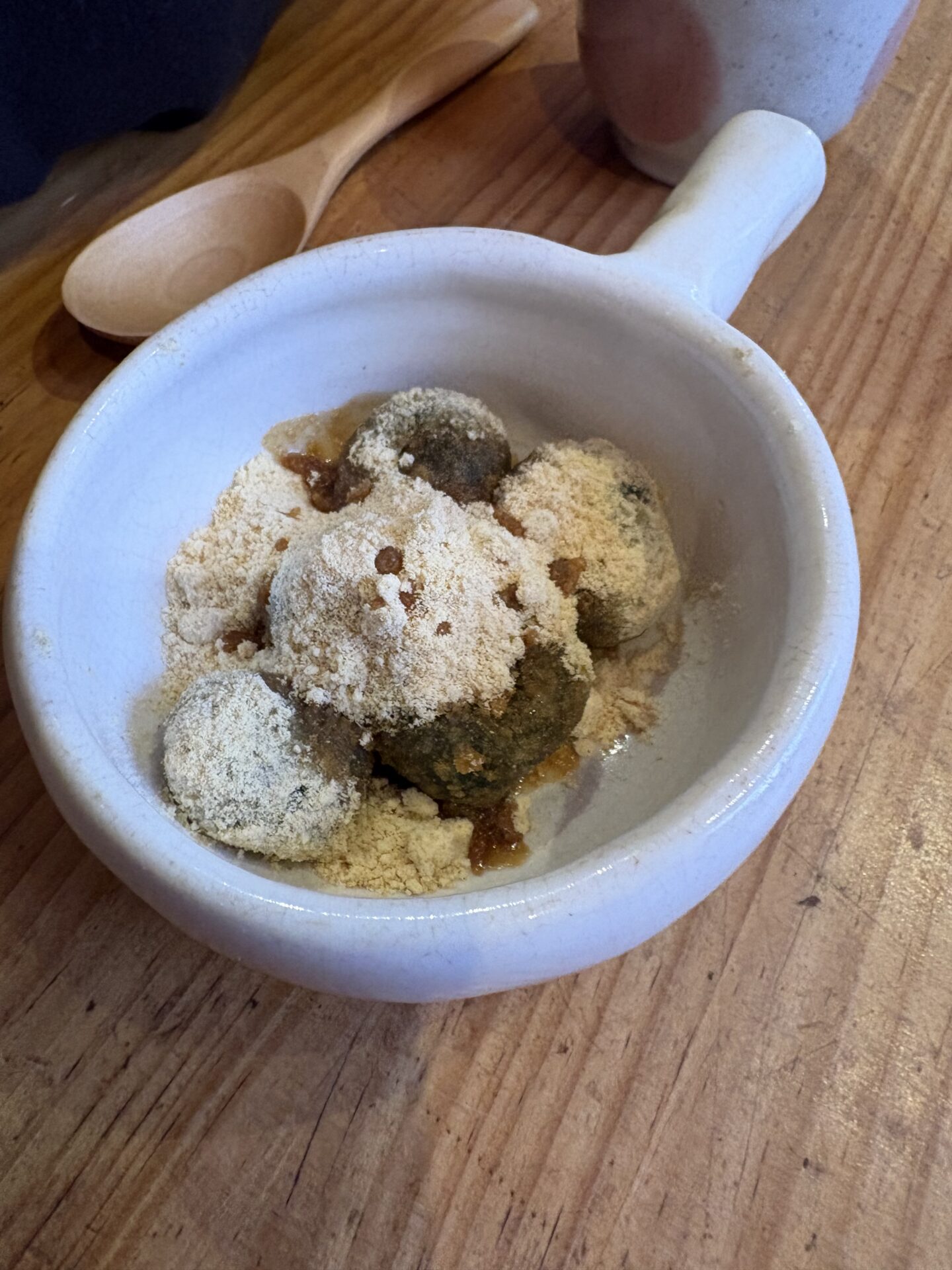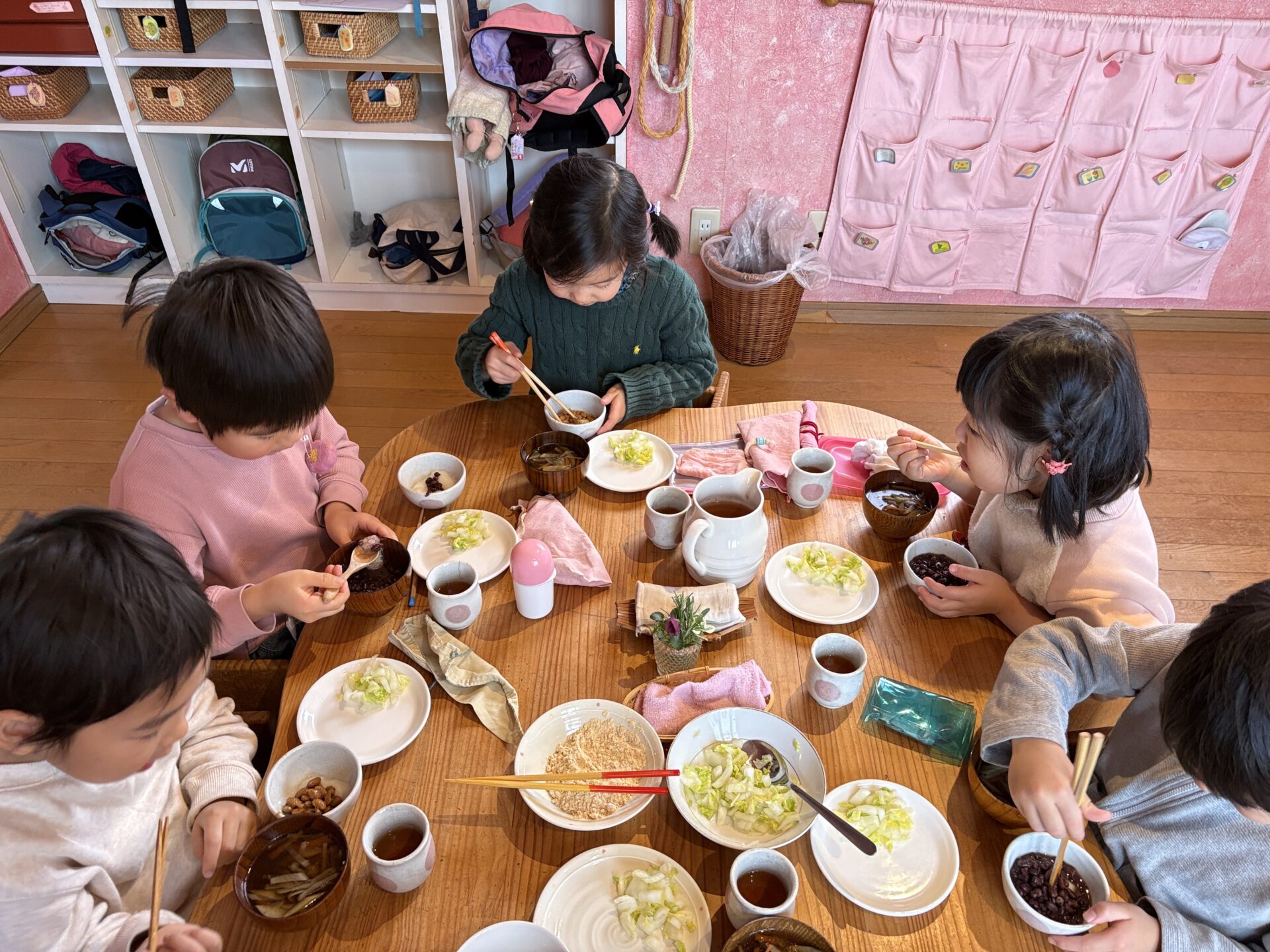 最後は残ったきなこと黒蜜を、少しの三年番茶で溶いて飲むのは虹のこども園流です。