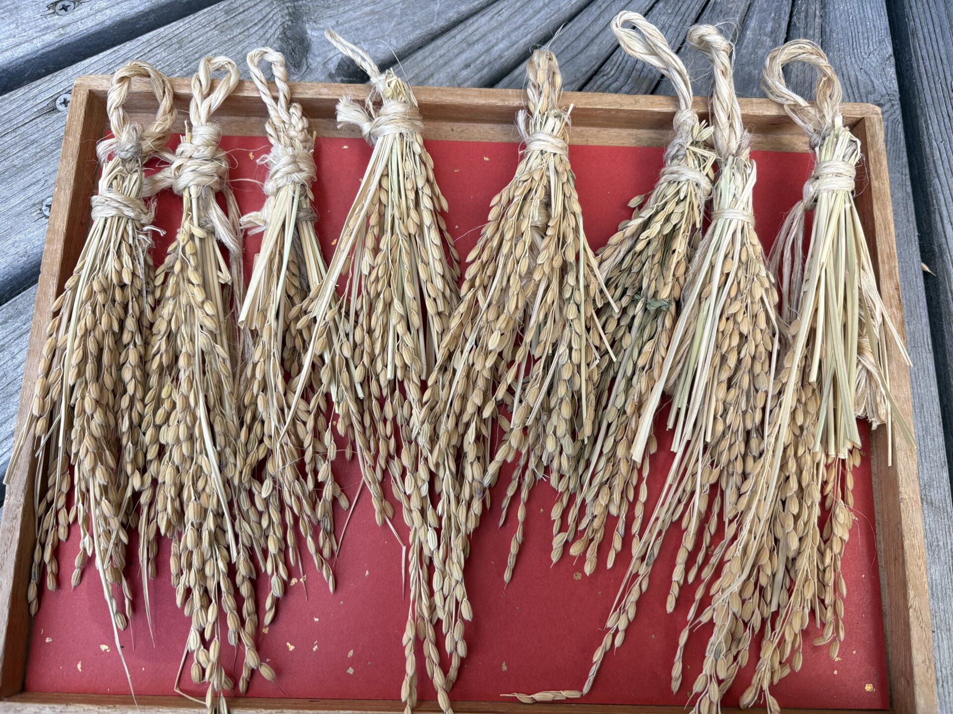 ワークショップで用意していただいた稲穂は片手で掴めないほどたくさんありましたが、子どもたちが育てた稲穂は一人分ずつにするとほんのわずかです。タッセル状にするには、少し無理がありそうでしたが、なんとかまとめました。