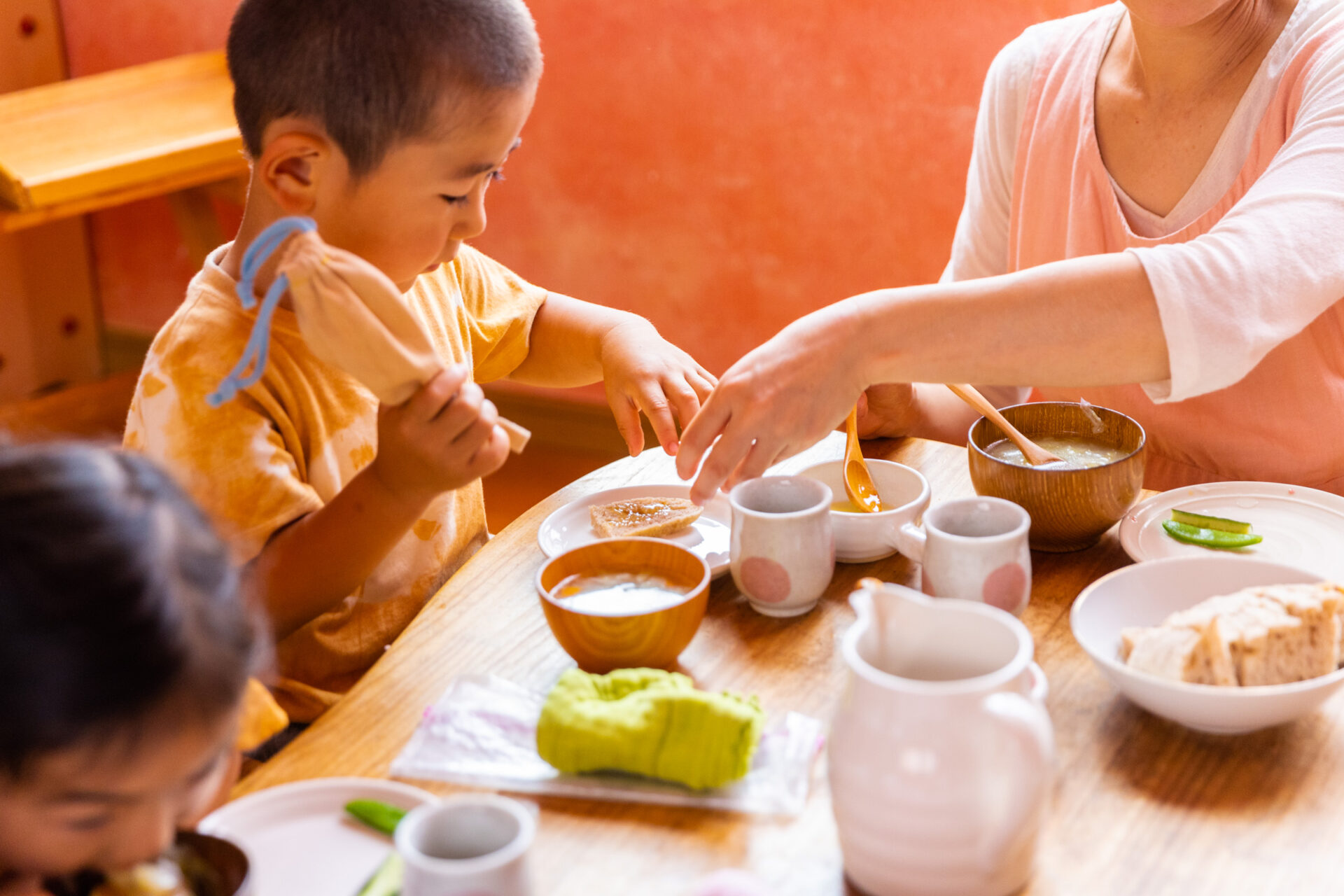 園では日々の給食やおやつも子どもと一緒に調理する教育環境であること、またアレルギーも含めてさまざまな食環境のお子さんがいるので、穀物菜食の食事を原則にしていますが、決して穀物菜食が食事として望ましいと推奨しているわけではありません。